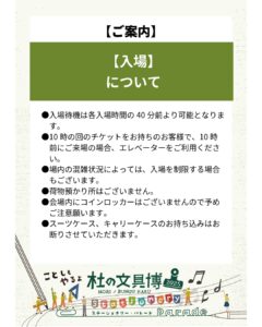 公式HP注意事項内に記載のある内容もございますが、改めて入場に関するご案内です。