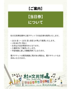 杜の文具博会期中に紙チケットでの当日券を各日14時より販売いたします。