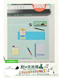 ステーショナリーは鉛筆、消しゴム、コンパス、定規、ノート、万年筆、インクなど様々な文房具が登場します。