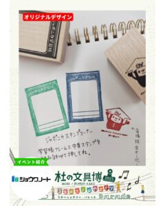 ショウワノートブースのジャポニカスタンプコーナーではフレームに合わせていただくご当地スタンプをご用意いたしました。ご自由に押していただけますので是非お越しください!